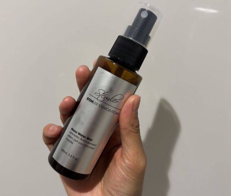 その中でも、ステムラーノナノウォーターミストは一番若い羊水の幹細胞培養液が入っていますので成長因子の濃度がとても濃いんです!