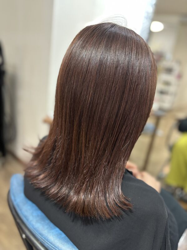 10レベルくらいのベージュ系のカラーをかぶせて全体をちょっとトーンアップ。ハイライトが入ってるだけで全体的に明るく見えるしオシャレ感もアップします❣️