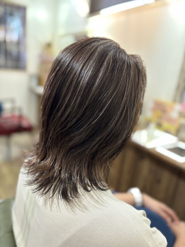 ハイライトを入れて全体を明るくした方が白髪も目立ちにくいです(^_-)-☆