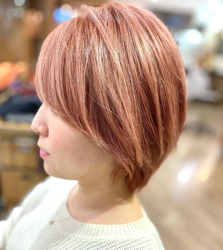 1回ブリーチ剤を混ぜて明るめベースを作ってから上からトリートメントカラーでピンクを重ねてます。韓国系アイドルなように、しっかりピンクを表現したい人に向いてます。