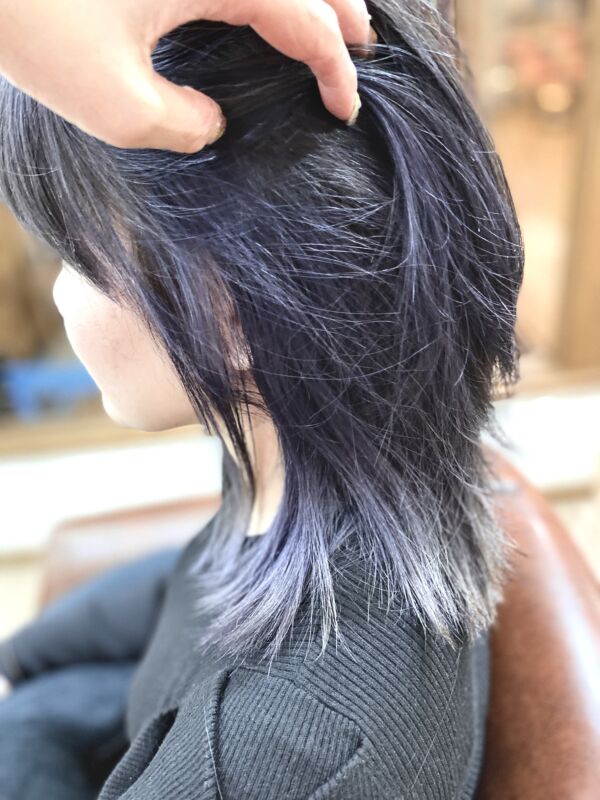 今年のトレンド色にもあるベリーペリー🫐(青紫系)これが本当かわいい❤️ブリーチ後の黄色っぽいカラーをしっかり押さえてくれるので、退色も綺麗です🧡