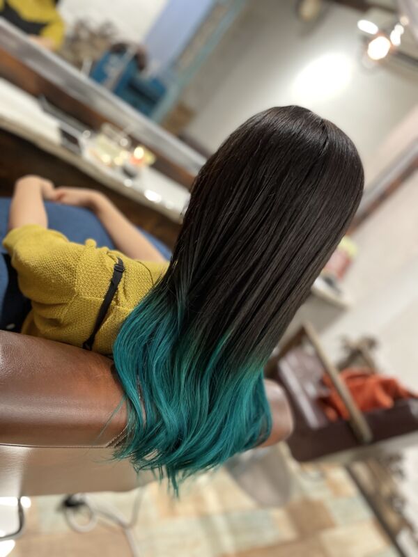 ブリーチをしてからの、ターコイズをオンしました✨