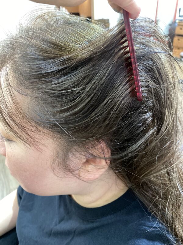 白髪をグレーに近づけたいのでしっかり抜きます。※抜きが悪いとグレーにならないので白髪ぼかしになりません。