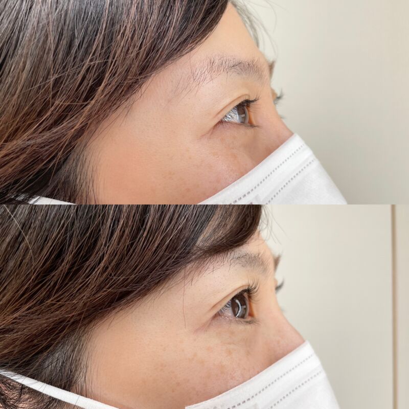 ビフォーはまつげパーマの残りがある状態ですが、アフターの方が根本の立ち上がりがでて、横から見ても目が大きくなっているのがわかりますね✨