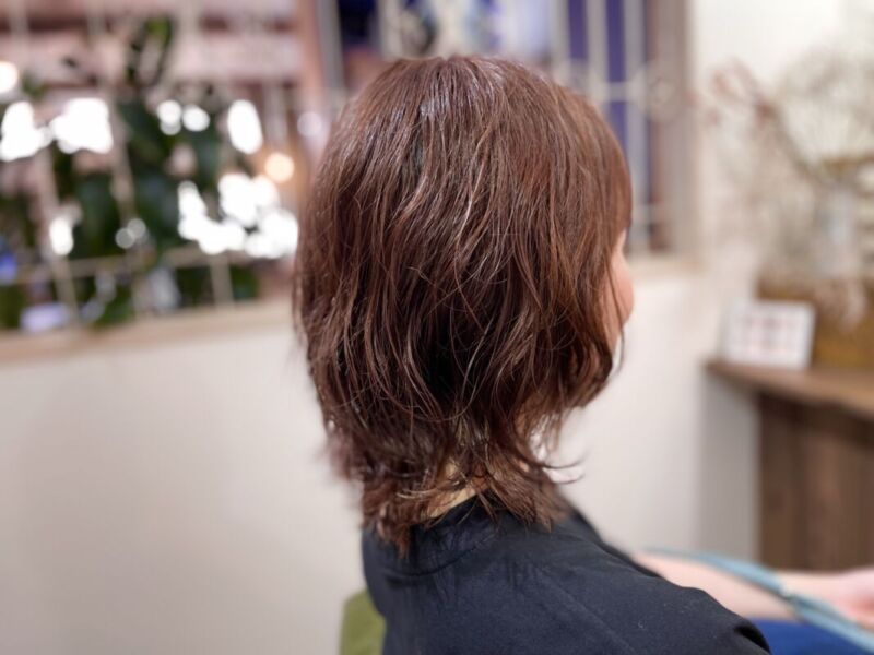 ミディアムのウルフスタイルにしたいということで、カットパーマさせていただきました😊