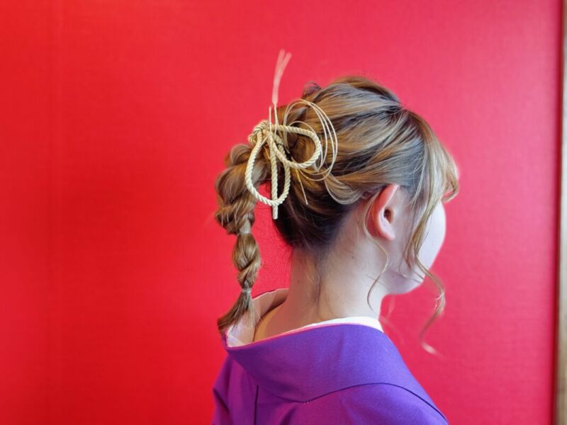 最近はお着物にもポニテアレンジが人気ですね✨